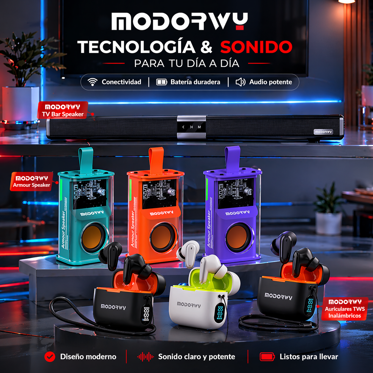 Llevate el combo completo: barra de sonido + parlante + auriculares inalámbricos.